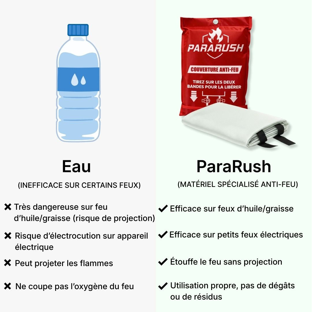 Non. La couverture anti-feu ParaRush ne remplace pas un extincteur ni l’intervention des pompiers.